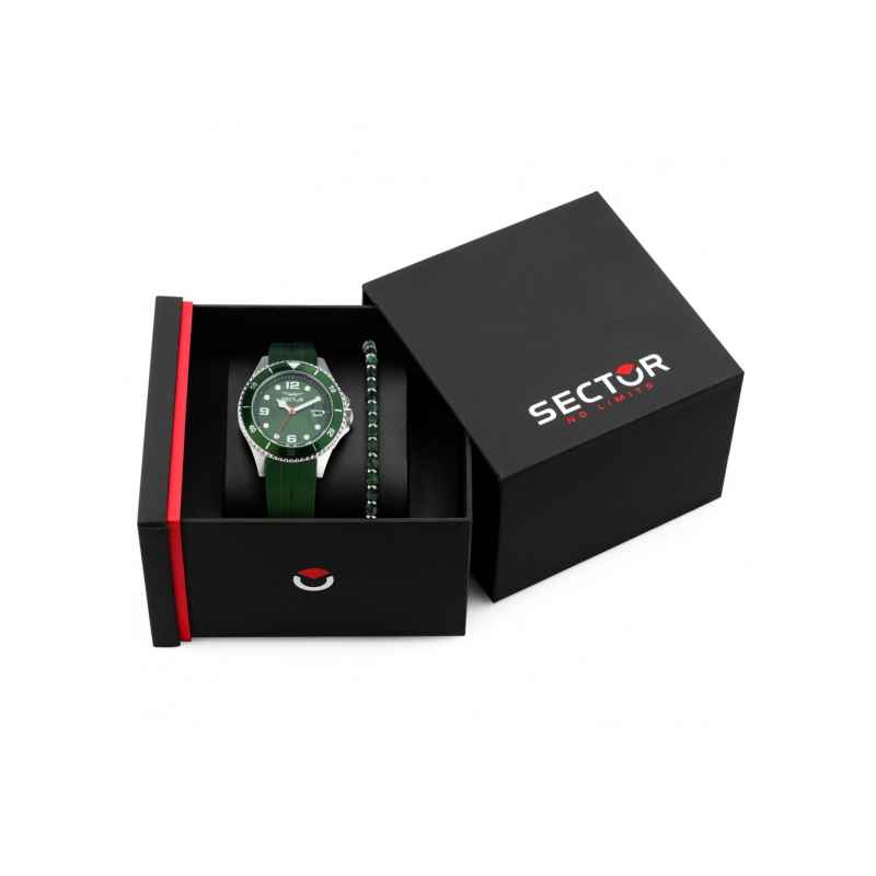Männlicher Sektor 230 Geschenkbox ist die perfekte wahl für diejenigen, die eine uhr mit modernem und sportlichem design suchen, aber mit der praktischen notwendigkeit, den alltag und outdoor-abenteuer zu bewältigen. Die edelstahlgehäuse grünes zifferblatt mit weißen und roten details und grün silikonarmband machen es ein elegantes und vielseitiges zubehör, während die wasserbeständigkeit macht es für wassersport geeignet. Mit seiner exklusiven Geschenkverpackung ist es auch eine tolle Wahl als Gedanken für diejenigen, die ein nützliches und anspruchsvolles Geschenk machen wollen.