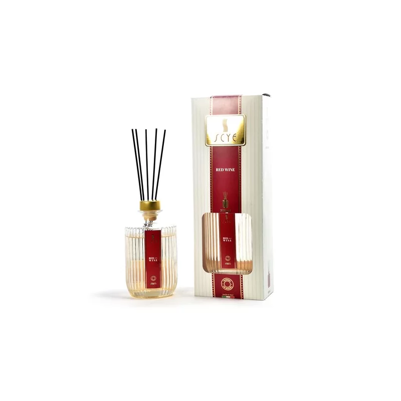 Entdecken Sie den raffinierten Charme SCYE Rotwein Essence Diffusor 500 ml, das perfekte accessoire für diejenigen, die ihre räume mit einem umhüllenden und raffinierten duft bereichern möchten. Dieser Diffusor, ausgestattet mit hochwertigen Baumwollstäben, ist ideal, um jede Umgebung in eine Ecke von Eleganz und Komfort zu verwandeln.