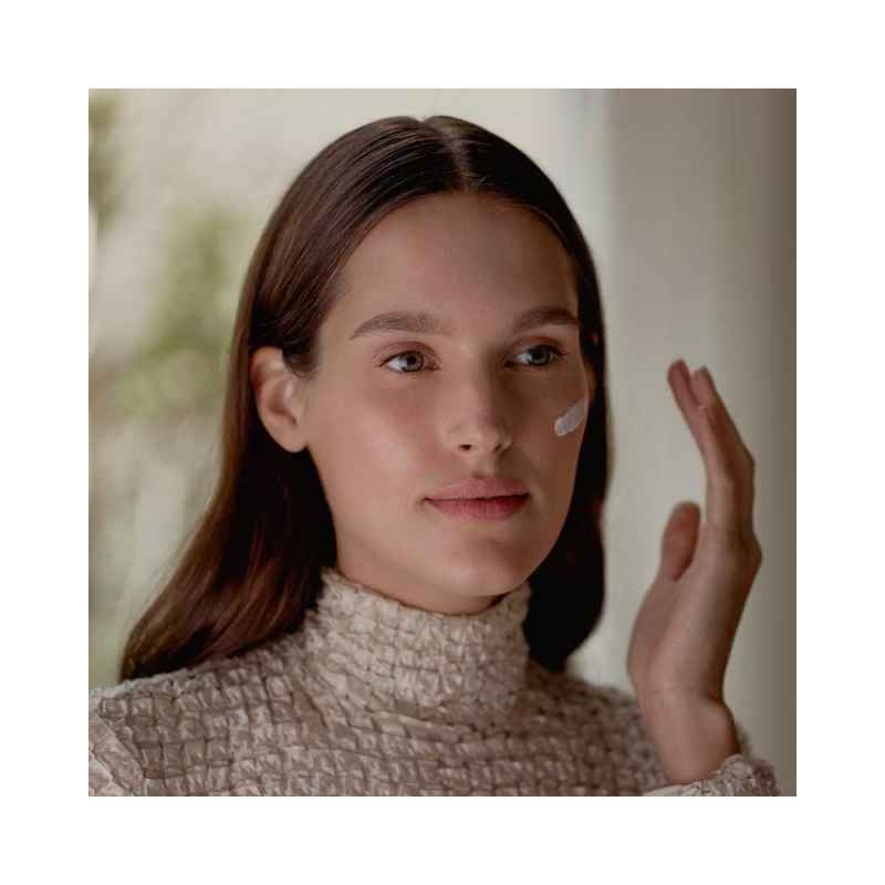 Protección física y biológica: La fórmula crea una barrera invisible en la piel, protegiéndola de agresiones externas diarias como la contaminación, polvo fino y rayos UV. Este sistema de protección dual ayuda a prevenir la formación de arrugas, manchas y pérdida de elasticidad.