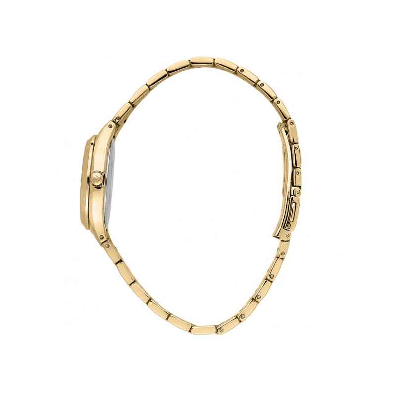 El brazalete también está hecho de acero inoxidable dorado, con un cierre de despliegue que garantiza un ajuste seguro y cómodo. Este reloj está equipado con movimiento de cuarzo, garantizando una precisión fiable y un mantenimiento reducido. Con resistencia al agua hasta 50 metros (5 ATM), el reloj de atracción Maserati también es adecuado para el uso diario, ofreciendo resistencia a los bocetos y buceo accidental corto.