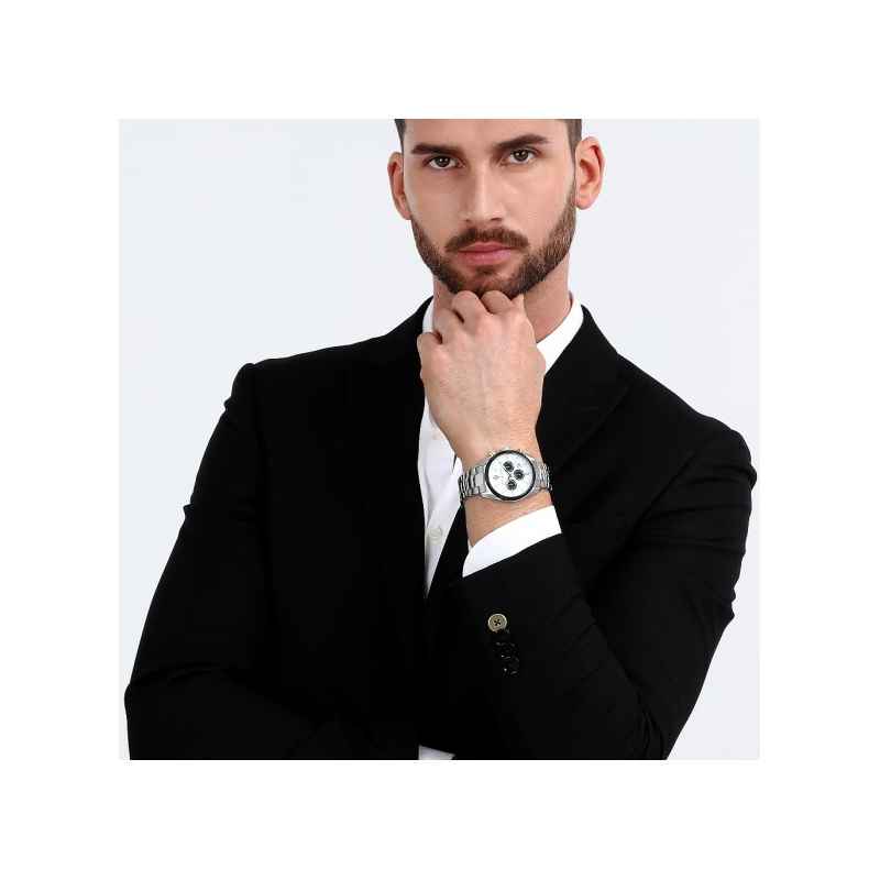 Ocio y actividades ocasionales: Gracias a su robustez y características de cronógrafo, este reloj también es perfecto para el ocio. Se puede llevar durante un paseo por la ciudad, un almuerzo informal o un día de ocio, añadiendo un toque de lujo incluso a los trajes más casuales.