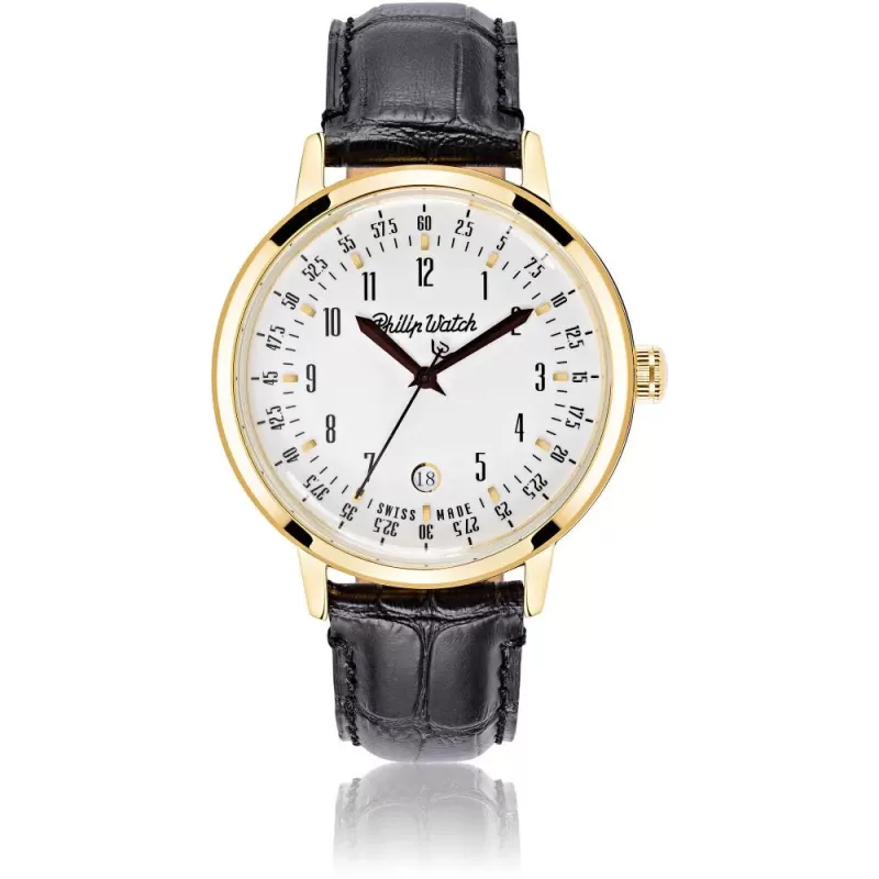 Movimiento suizo: El reloj está equipado con un movimiento alambre de alta precisión, símbolo de calidad y fiabilidad. Los movimientos suizos son conocidos por su precisión y durabilidad, haciendo de cada Philip Watch un producto exclusivo.