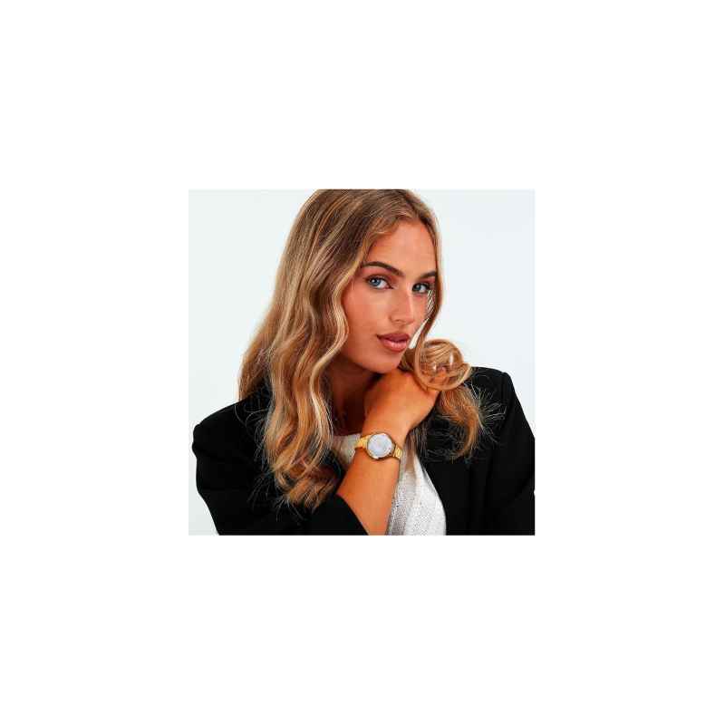 Diseño refinado: La esfera de nácar aporta luminosidad y un efecto sofisticado, adornada con índices dorados que mejoran la legibilidad. La caja de acero inoxidable dorado le confiere un aspecto luminoso a la vez que robusto, perfecto para cualquier ocasión especial o cotidiana.