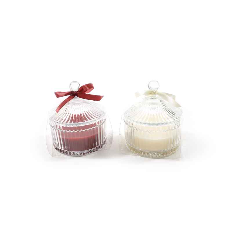 Boîte à bijoux en verre élégante: La bougie est enfermée dans un magnifique récipient en verre finement travaillé, qui peut être réutilisé comme boîte à bijoux ou pour stocker de petits articles une fois la bougie terminée. Le design ondulé du verre et le couvercle élégant avec bouton donnent un look raffiné, parfait pour exposer comme décoration dans le salon, dans la chambre, ou même dans la salle de bain.
